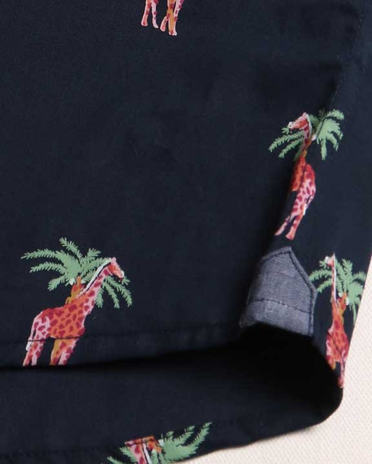 Camisa estampada de algodón – Navy con jirafas y palmas