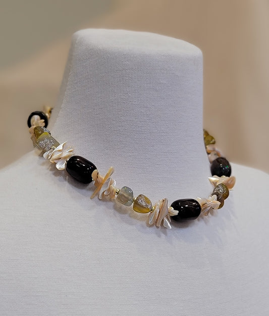 Corazón Caribe – Collar de Cristales Craqueados y Nácar Natural