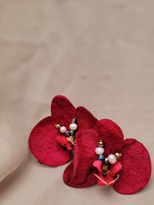 Red Orchid Bloom – Statement Earrings with Pearls & Crystals
